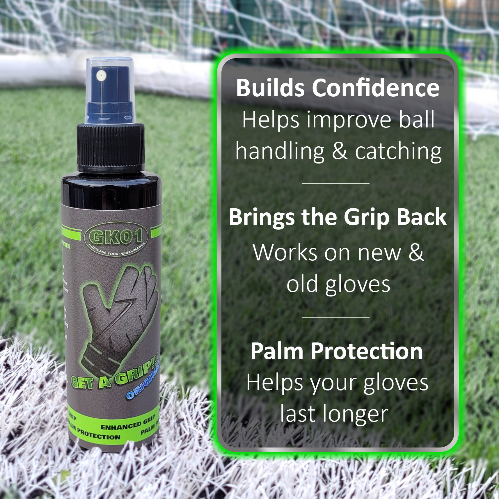 - Enhanced Grip for Maximum Control: GK01 Get a Grip Original provides an instant boost to your goalkeeper gloves, providing superior grip. The result? Better ball control, easier catches, and fewer handling errors.